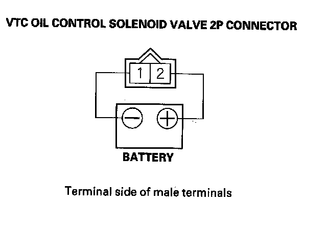 VTC Oil Control Solenoid Valve Removal/Test/Installation1. Disconnect the VTC oil control solenoid valve 2P connector.