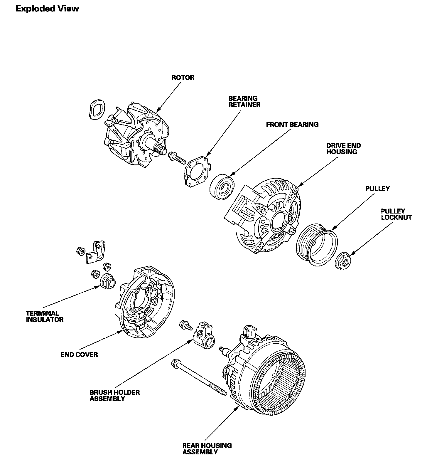 22. After assembling the alternator, turn the pulley by hand to make sure the rotor turns smoothly and without noise.