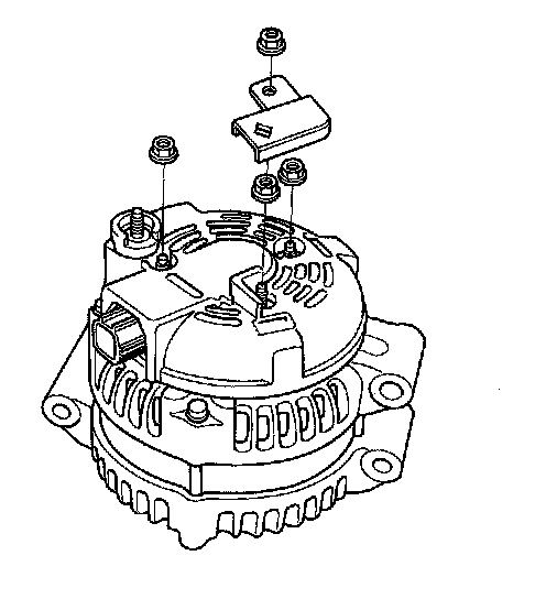 4. Remove the harness stay and the three flange nuts from the alternator.