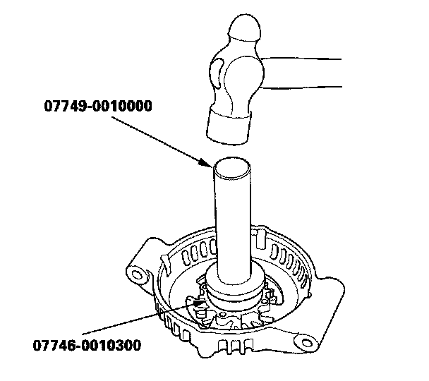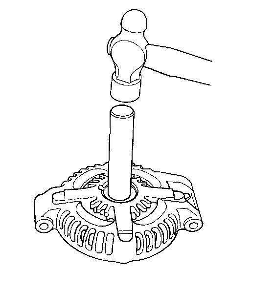 12. With a hammer and special tools, install a new front bearing in the drive end housing.