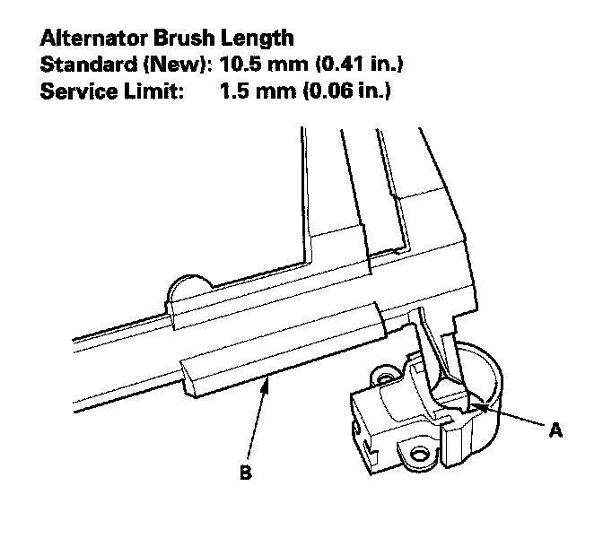 - If either brush is shorter than the service limit, replace the brush holder assembly.