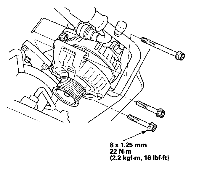 2. Tighten the three bolts securing the alternator.