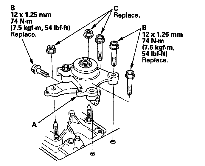 9. Loosely tighten the new bolt and nuts (C).
