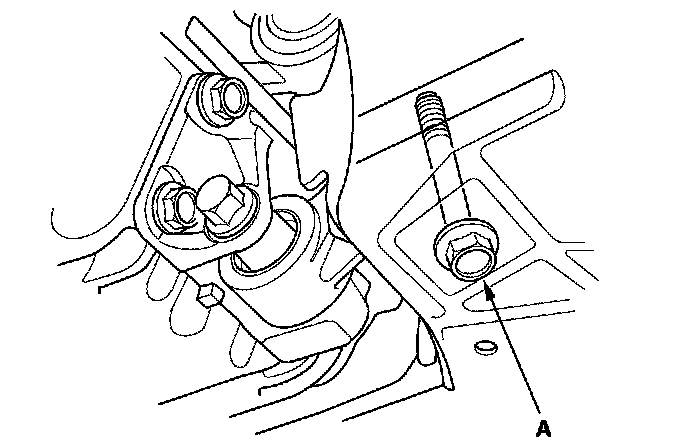 12. Loosen the lower torque rod mounting bolt (A).