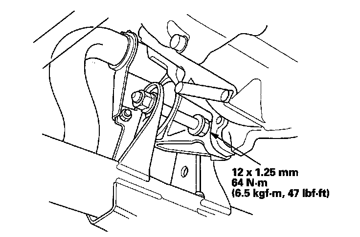 15. Tighten the transmission mounting bolt and nuts.