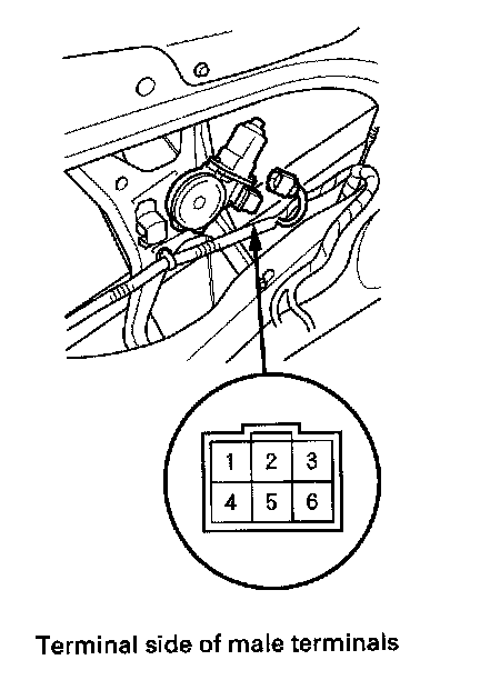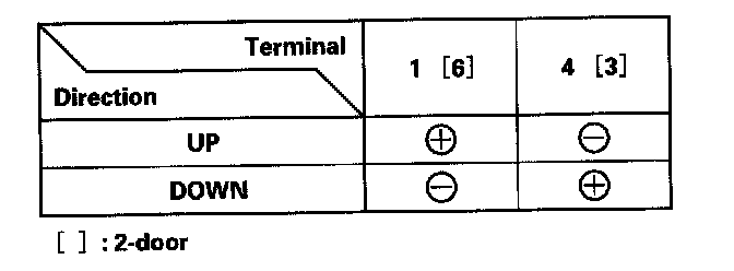 - Connect an analog voltmeter between the No.3 [No.4] (+) and No.5 [No.2] (-) terminals, and run the window motor down or up. The voltmeter needle should move back and forth alternately (a digital voltmeter reads about 2.5 V).