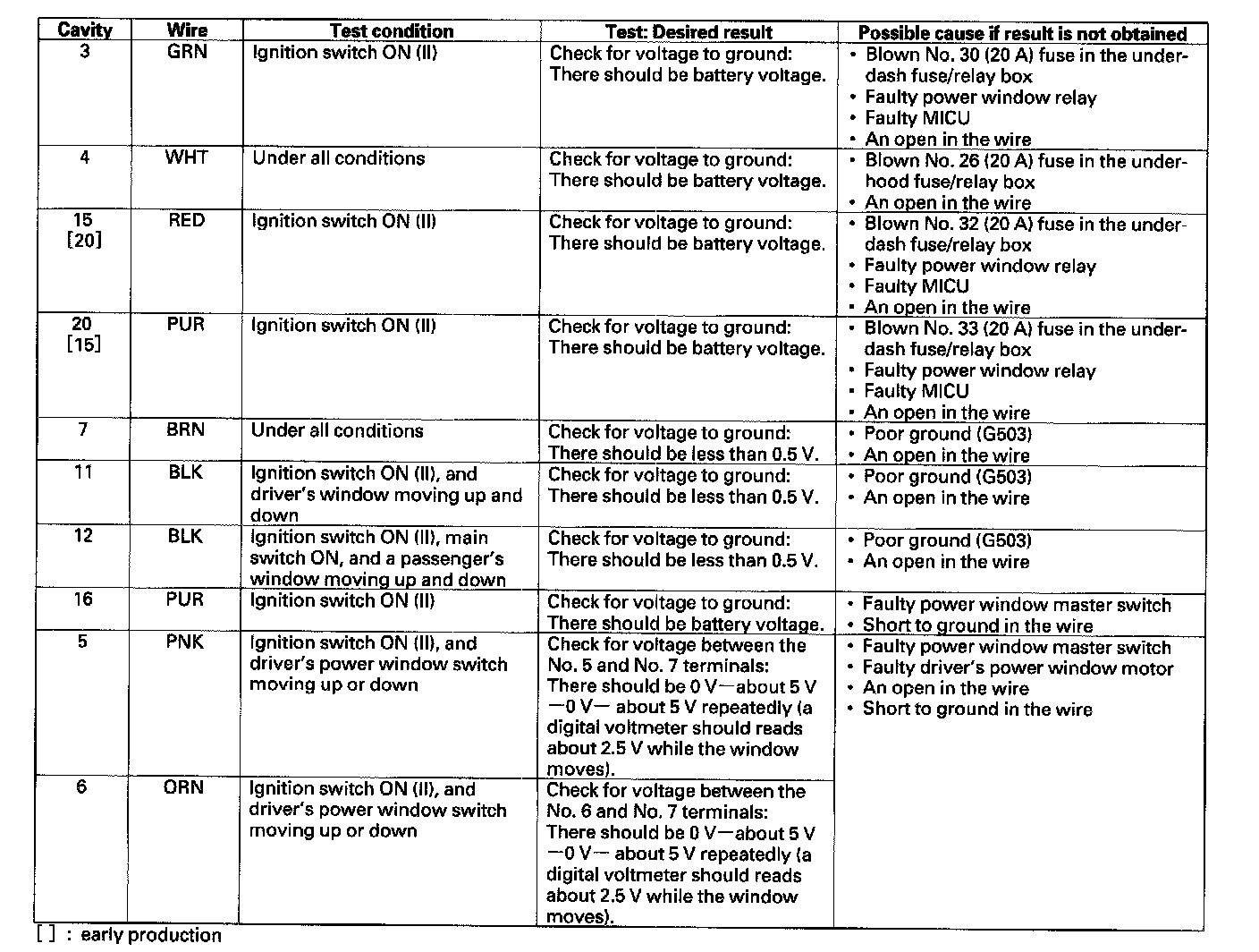 - If all the input tests prove OK, the control unit must be faulty; replace the power window master switch.