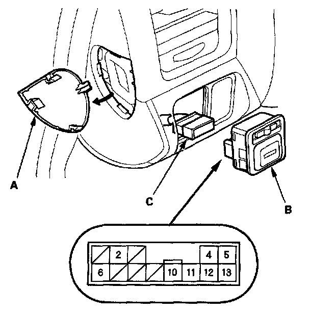 3. Disconnect the 13P connector (C) from the switch.