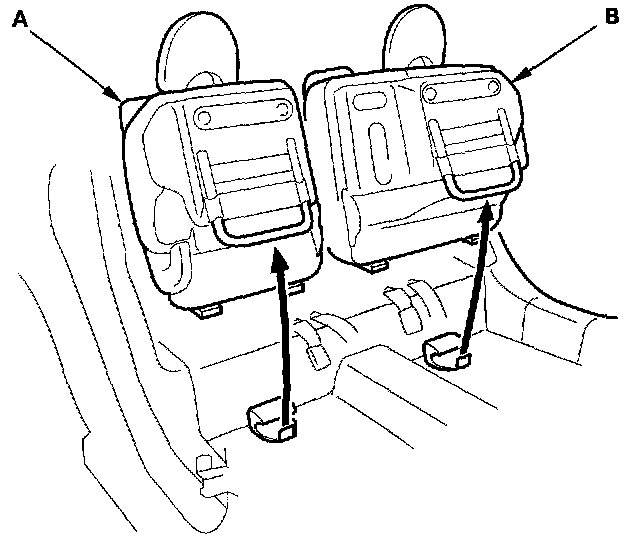 7. Remove the right rear seat (A) and the left rear seat (B) through both rear door opening.
