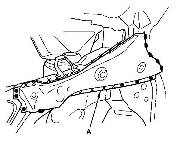 - Remove the front wheelhouse and wheelhouse gusset as an assembly.