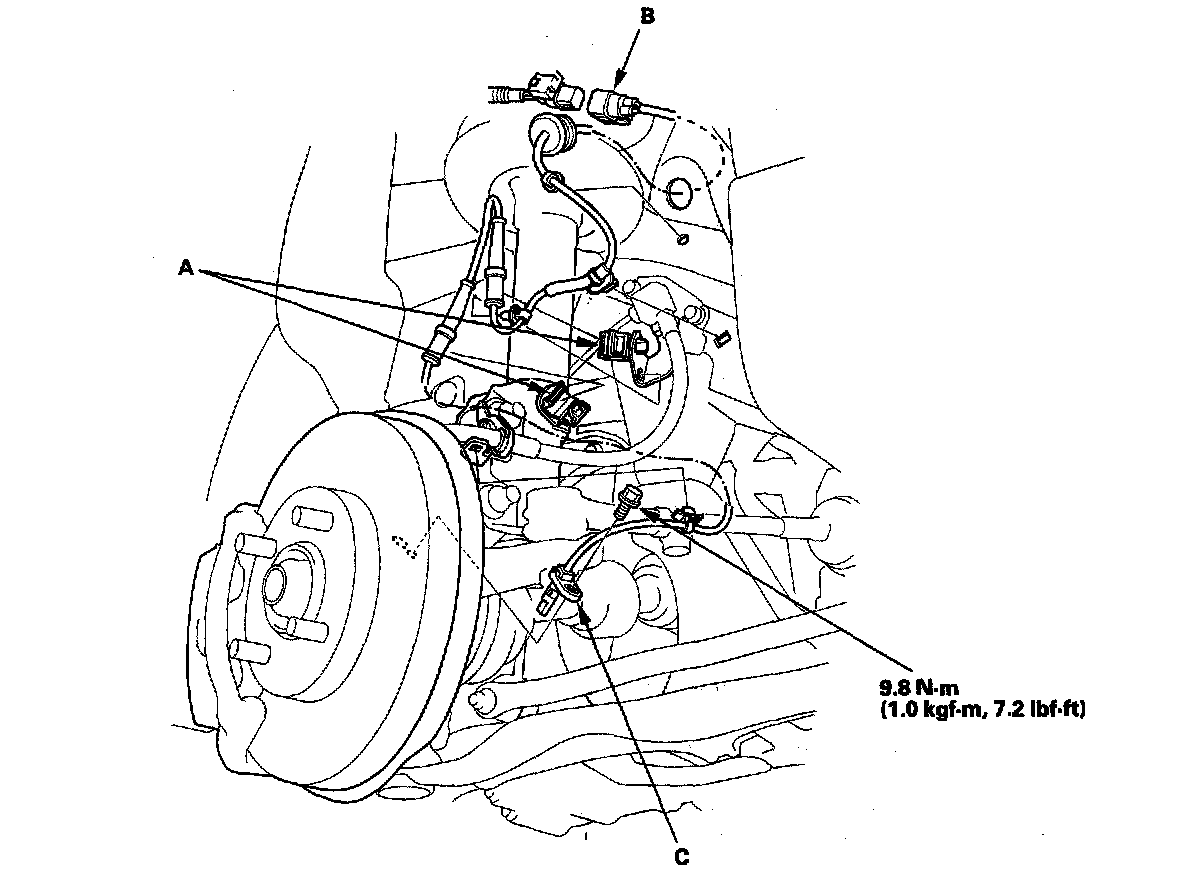 ^ If the wheel sensor comes in contact with the wheel bearing, it is faulty.