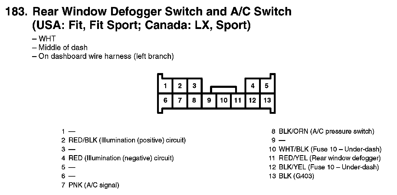 183. Rear Window Defogger Switch And A/C Switch (USA: Fit, Fit Sport; Canada: LX, Sport):