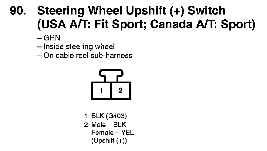 90. Steering Wheel Upshift (+) Switch (USA A/T: Fit Sport; Canada A/T: Sport):