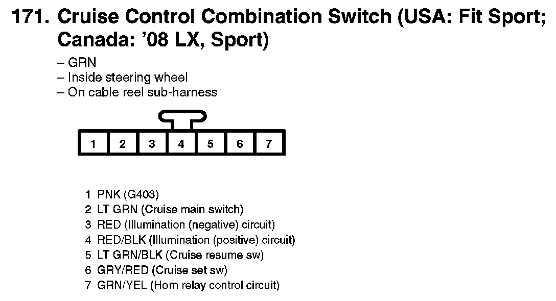 171. Cruise Control Combination Switch (USA: Fit Sport; Canada: '08 LX, Sport):
