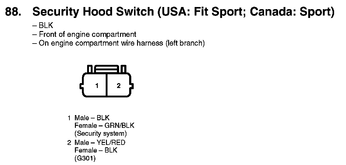 88. Security Hood Switch (USA: Fit Sport; Canada: Sport):