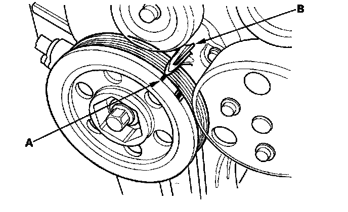 8. Check for the TDC mark (A) lines up with the pointer (B).