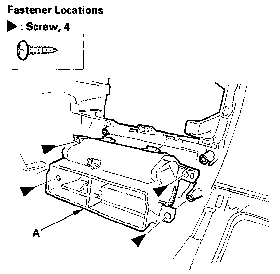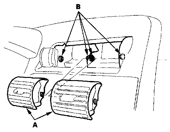 3. Remove the screws, then remove the driver's center vent assembly (A).