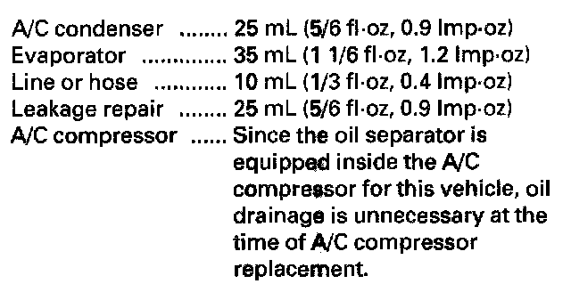 A/C Refrigerant Oil ReplacementRecommended PAG oil: SP-10:
