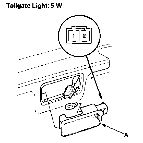 4. Check for continuity between the No. 1 (+) and No. 2 (-) terminals. There should be continuity. If there is no continuity, check the bulb. If the bulb is OK, replace the cargo area light assembly.