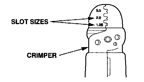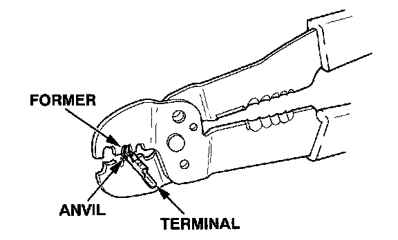 4. Position the terminal in the crimping tool slot with the solid portion of the terminal toward the anvil and the open section toward the former.