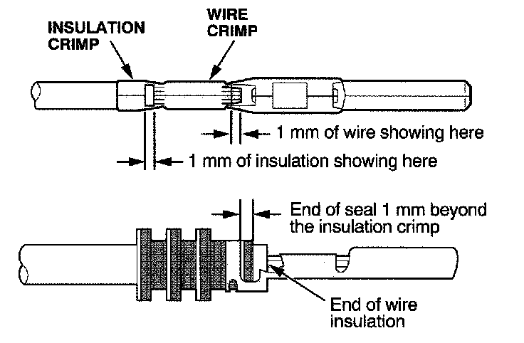 - If you do not have a wire seal, then use the next larger size crimp slot. Position the crimping tool over the insulation crimp section of the terminal, then squeeze the tool with both hands until the stops make contact.