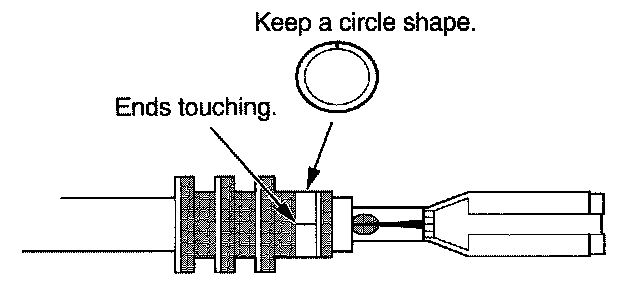3. Strip the insulation off the end of the wire so the wire fits in the new terminal as shown. (If the wire has a wire seal, replace it with a new one from the kit.)