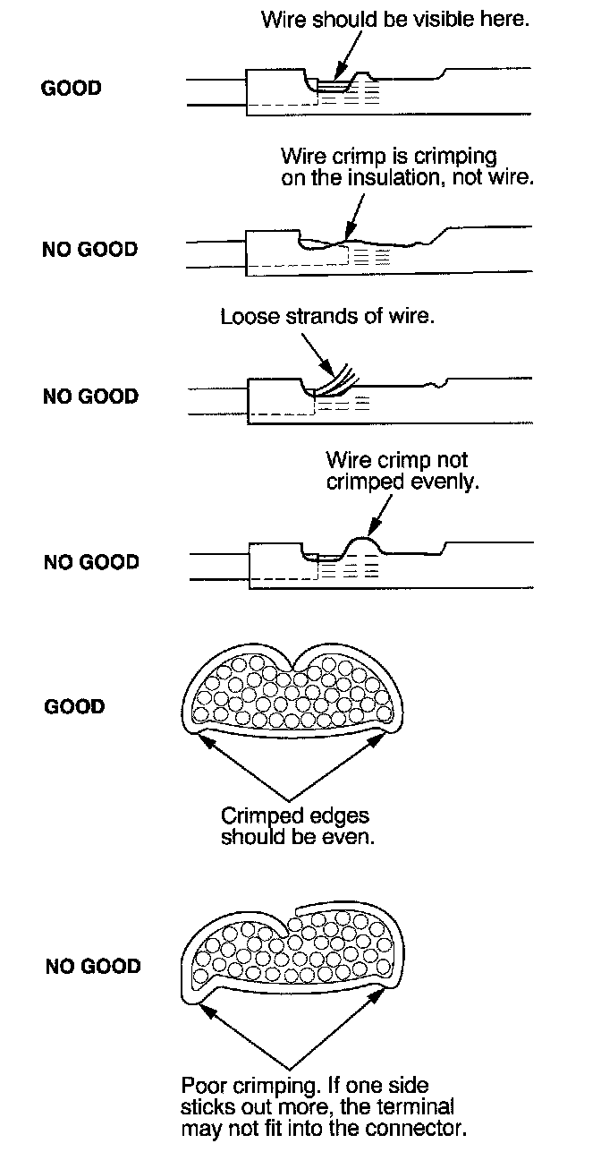 8. Inspect the quality of the wire crimp. If it has any of the given NO GOOD crimps, cut it off and start over.