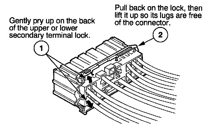 - If it has a secondary terminal lock, go to Connectors With a Secondary Lock. A secondary lock, found on most connectors on some models, is an additional locking device on the connector housing as a backup for the primary lock on the terminal.