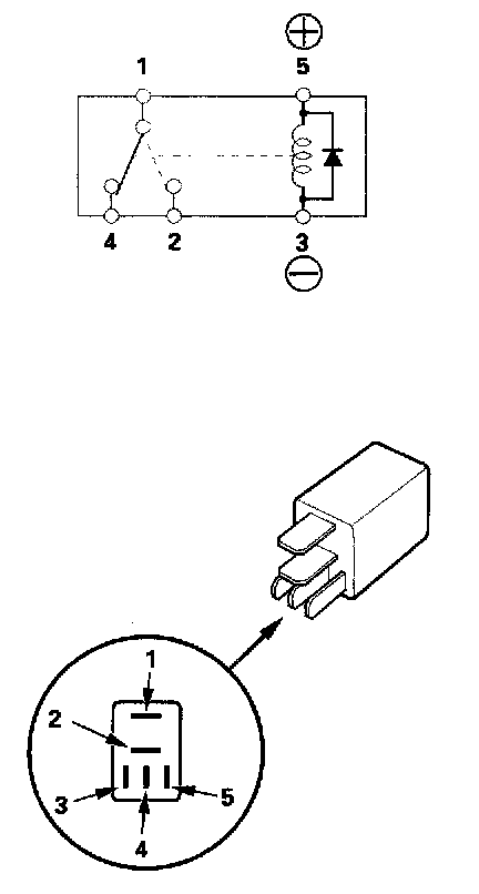 - There should be continuity between the No. 1 and No. 2 terminals when battery positive terminal is connected to the No. 5 terminal, and battery negative terminal is connected to the No. 3 terminal.