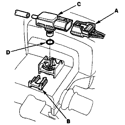 4. Install the parts in the reverse order of removal with a new O-ring (D).