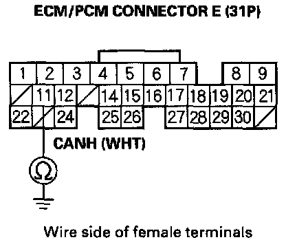 7. Check for continuity between ECM/PCM connector terminals E11 and E24.