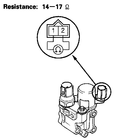 3. Measure resistance between rocker arm oil control solenoid 2P connector terminals No. 1 and No. 2.