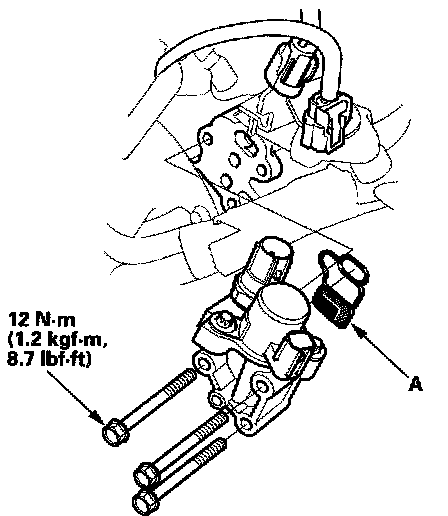 4. If the resistance is within specifications, check the rocker arm oil control valve filter (A) for clogging. If it is clogged, replace the rocker arm oil control valve filter, the engine oil filter, and the engine oil.