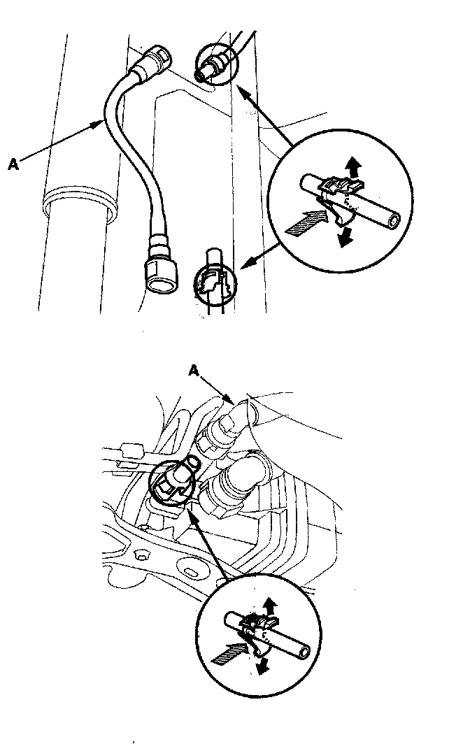 3. Before connecting a new fuel tube/quick-connect fitting assembly (A), remove the old retainer from the mating line.
