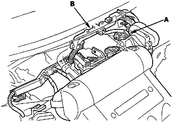 Ignition Coil Removal/Installation1. Remove the MAP sensor connector (A), then remove the harness holder (B) from the brackets.