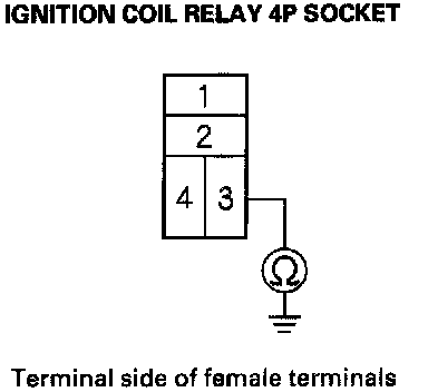 10. Check for continuity between ignition coil relay 4P socket terminal No.3 and body ground.