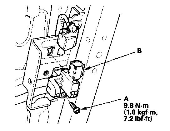 1. Install the new driver's seat position sensor with a TORX bolt (A), then connect the seat position sensor harness 2P connector to the driver's seat position sensor (B).