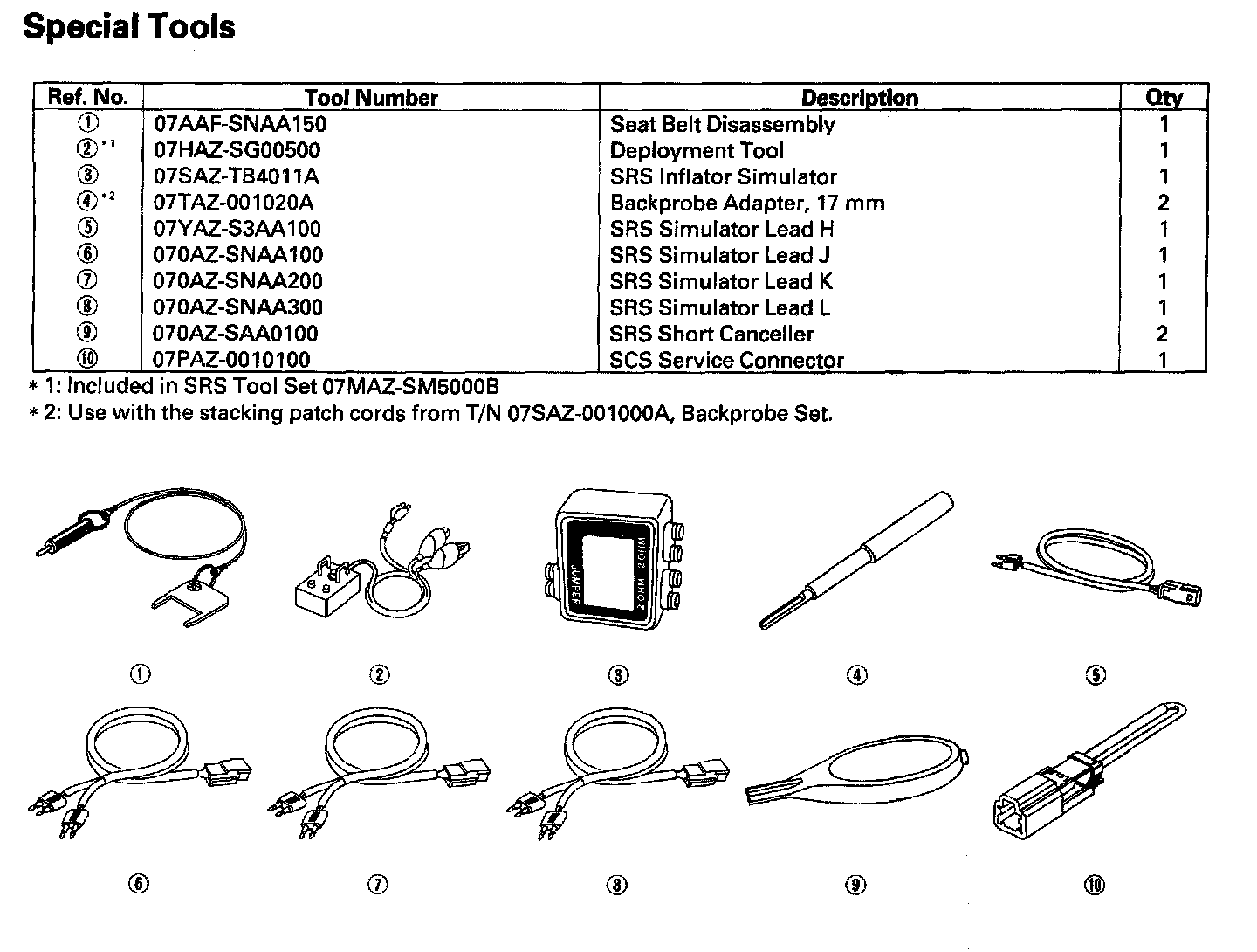 Restraints Special Tools:
