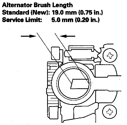 - If either brush is shorter than the service limit, replace the rear housing assembly.