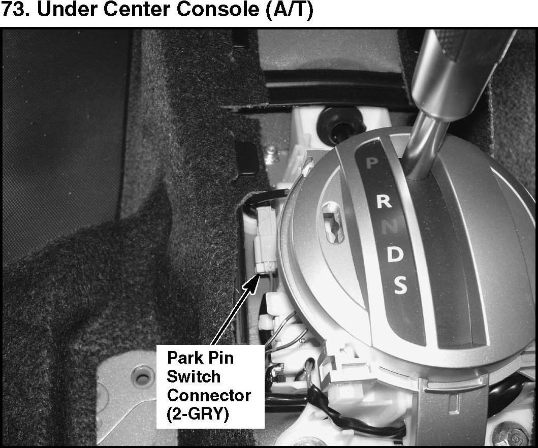 73. Under Center Console (A/T):