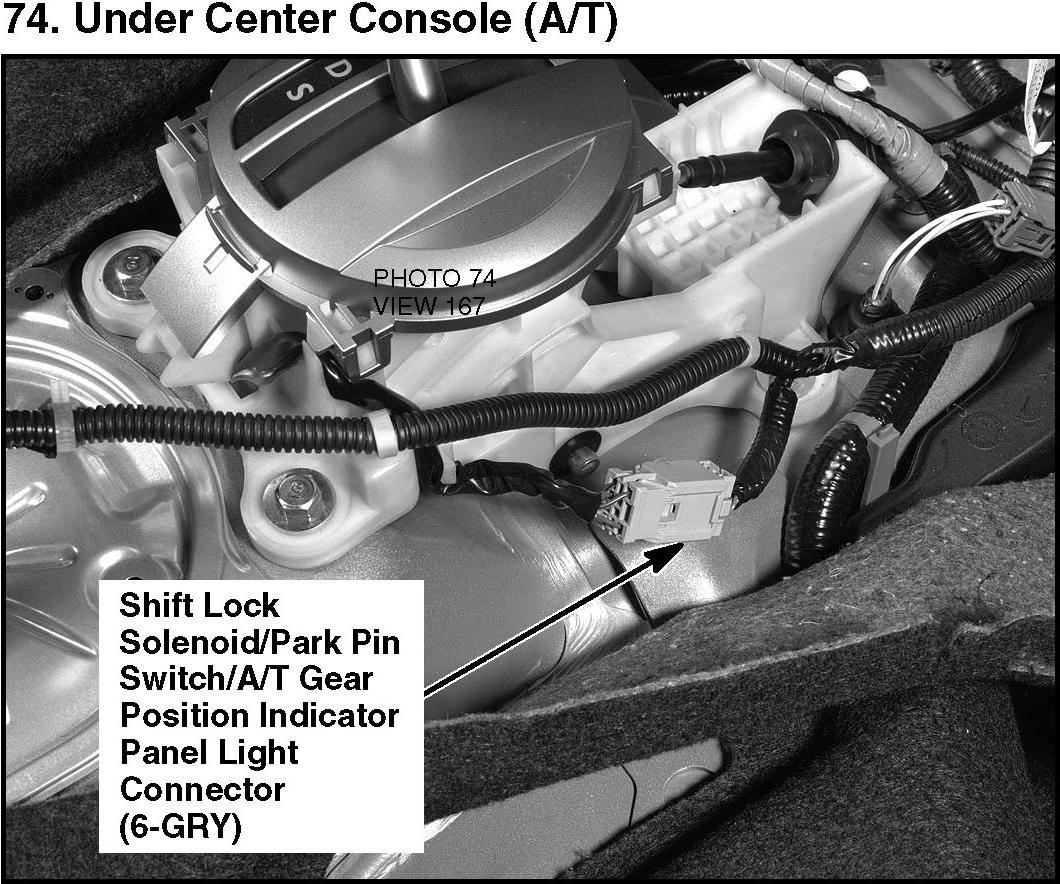 74. Under Center Console (A/T):