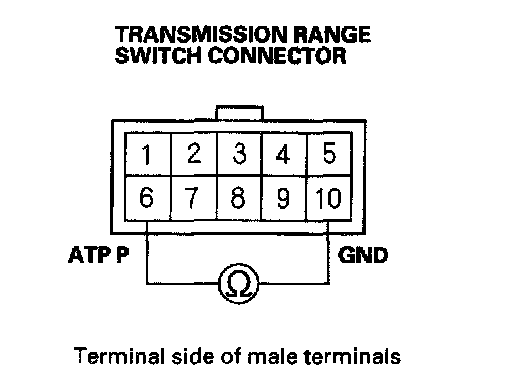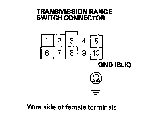 16. Check for continuity between transmission range switch connector terminal No. 10 and body ground.