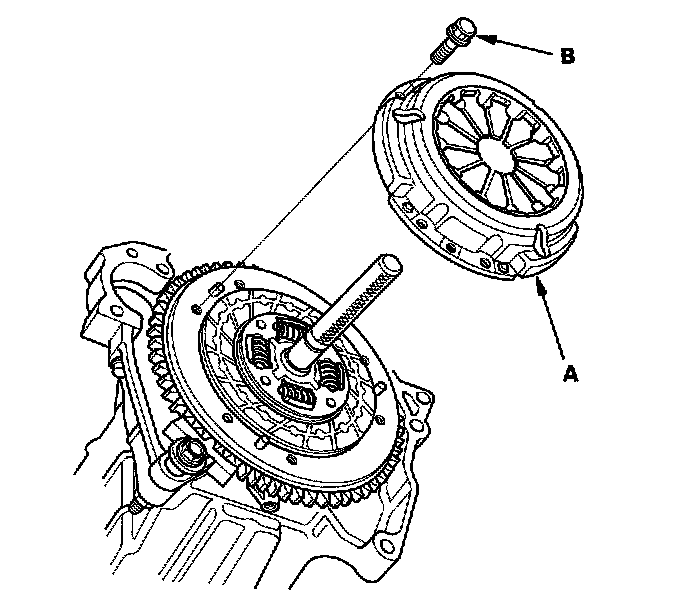 4. Install the pressure plate (A) and the mounting bolts (B) finger-tight.