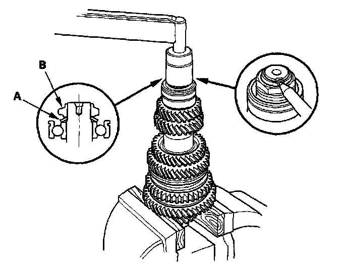 7. Install the needle bearing (A) and 2nd gear (B).