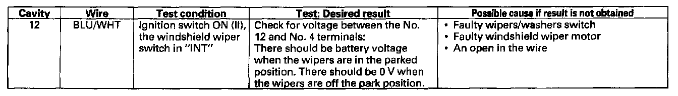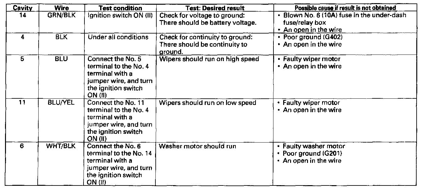 Wiper/Washer Switch Input Test1. Remove the wiper/washer switch.