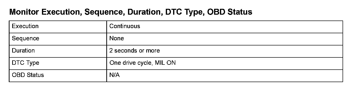 Monitor Execution, Sequence, Duration, DTC Type, OBD Status