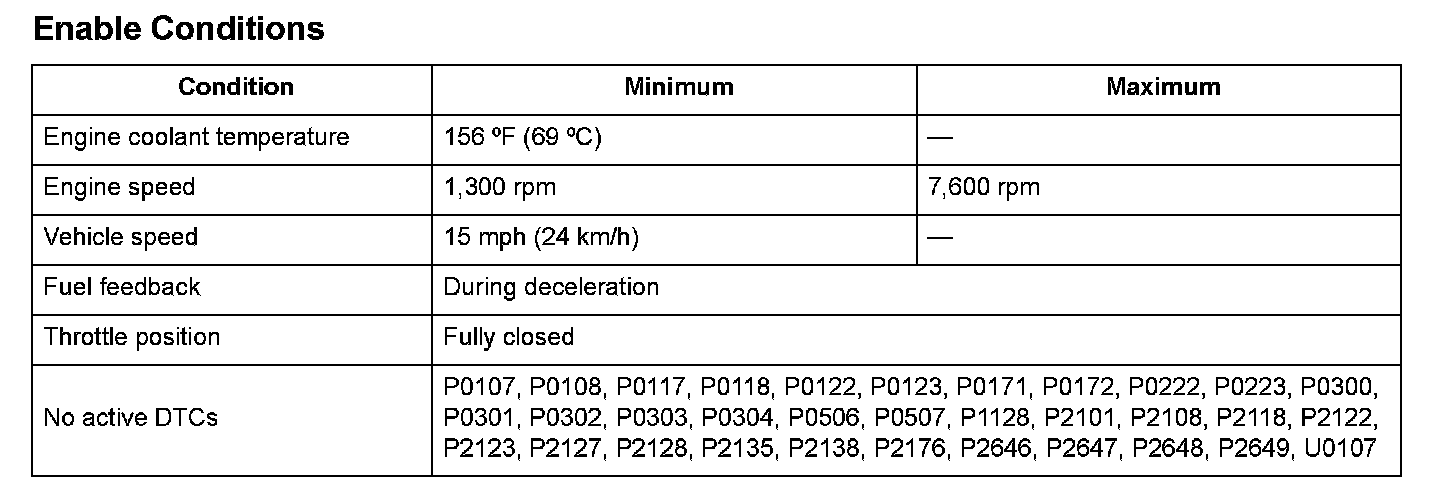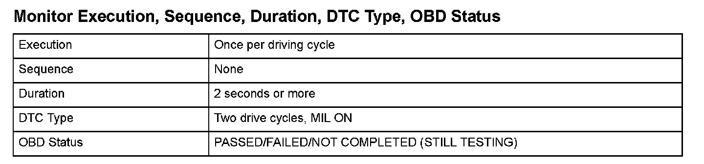 Monitor Execution, Sequence, Duration, DTC Type, OBD Status