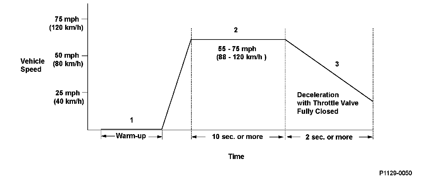 2. Drive the vehicle at a steady speed between 55 - 75 mph (88 - 120 km/h) for at least 10 seconds.