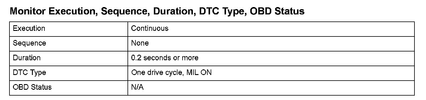 Monitor Execution, Sequence, Duration, DTC Type, OBD Status
