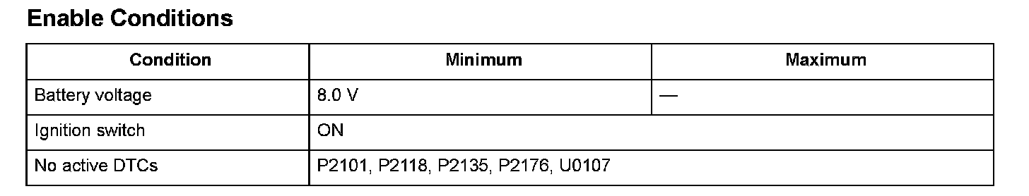 The CPU in the throttle actuator control module performs self-diagnosis for the ROM, the RAM, and the A/D converter. If internal data is found to be abnormal, a malfunction is detected and the malfunction data is transmitted to the ECM. When the ECM receives the malfunction data from the throttle actuator control module, the ECM detects a malfunction in the throttle actuator control module and stores a DTC. When the ECM monitors the serial signal between the ECM and the throttle actuator control module and these signals do not agree, the ECM detects a malfunction and a DTC is stored.